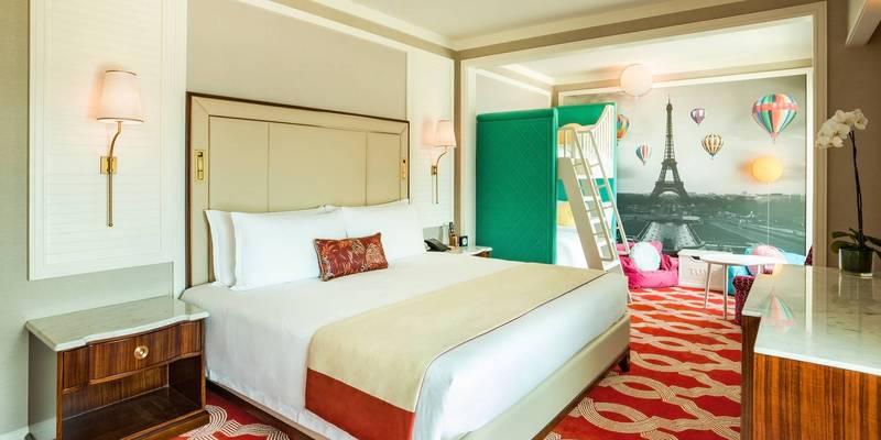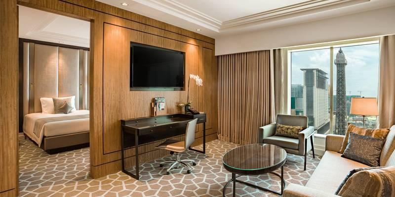 マカオのコタイ地区の中心部に位置するThe Parisian Macaoは、豪華なショッピングモール、屋外プール、ウォーターパークを提供するフランスがテーマのホテルです。フランスを象徴するエッフェル塔のレプリカ(実際の半分のサイズ)を併設しています。併設スパセンターでは、マッサージやトリートメントマッサージでリラックスできます。 The Parisian Macaoからコタイエキスポまで、地下道経由で徒歩約10分、マカオ・フェリーターミナルから車で6分、タイパ・フェリーターミナルから車で10分、マカオ国際空港から車で8分です。フェリーターミナルまたは空港からホテルまでの無料シャトルバスを利用できます。